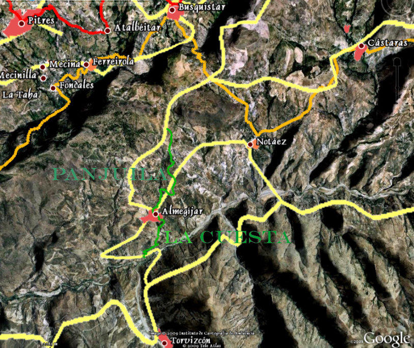 zona norte del pueblo para tomar la estrecha carretera que une Almegíjar con Notáez. Tras unos 900 metros