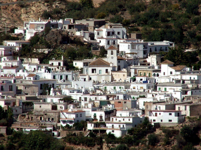 Umbría. El núcleo urbano de Almegíjar aparece encaramado sobre unas peñas