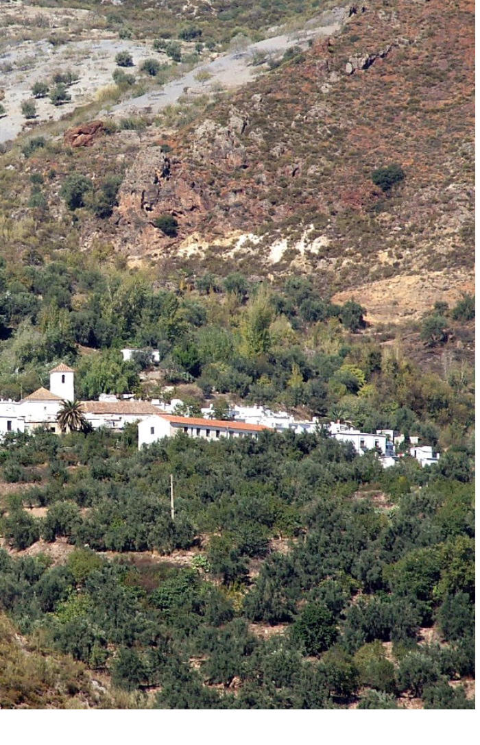 paisaje salpicado de frutales y olivos que nos ofrece La Contraviesa y el valle de dicho río, en el cual nos